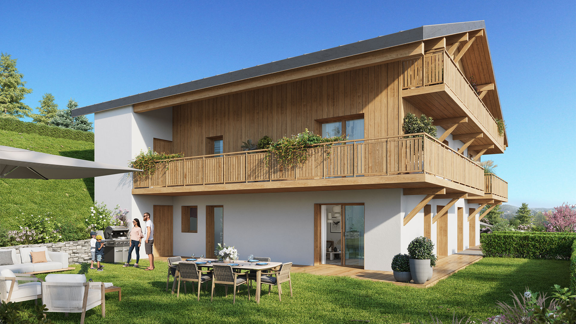 Nichée au cœur du domaine skiable des Portes du Soleil, l’un des plus vastes d’Europe, L’ESTIVE se compose de 10 bâtiments élégants à l’architecture inspirée des chalets traditionnels de Haute-Savoie. Conçus dans un esprit de respect du paysage alpin, les logements adoptent des lignes sobres, un bardage bois naturel et des toitures à deux pans, en parfaite harmonie avec l’environnement montagnard.